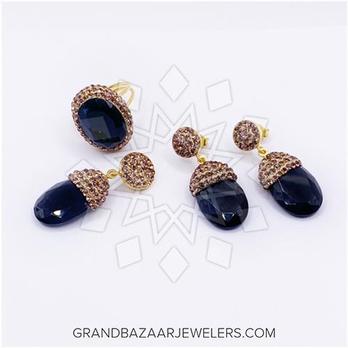 925 Sterling Silver Gem and Crystals Ring Earring Pendant Sets